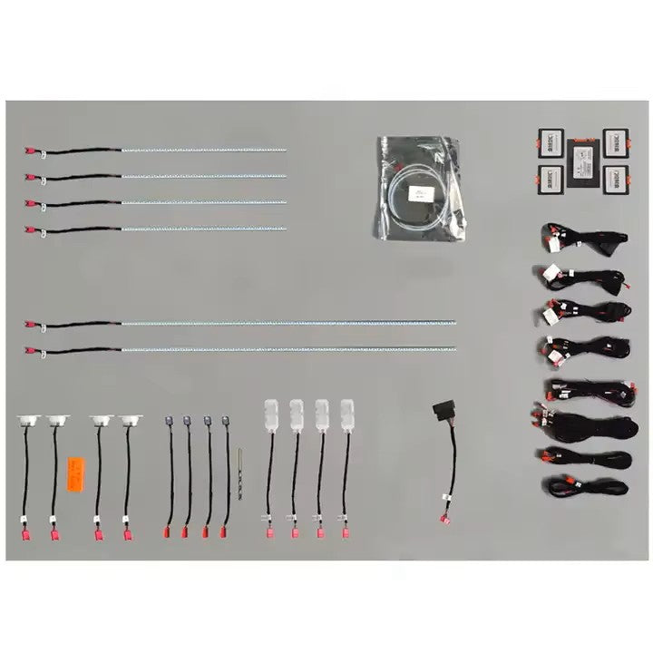 Transform your Audi Q8 SQ8 RSQ8 into a personalized studio of color and ambiance with the Ambient Lighting Kits. Let the colors dance and change to the beat of your music or maintain a stable color to accent your desired interior theme. The Bayern MotorWerks Ambient Lighting kit provides a touch of elegance and beauty and allows you to control the mood. Engineered specifically for Audi Q8 models manufactured between 2019-2024. The kit features 64 distinct color options, allowing precise customization to complement your interior design preferences or driving conditions. Our proprietary luminous strips utilize advanced diffusion technology that eliminates harsh lighting points while maintaining consistent illumination throughout the cabin. Installation requires no permanent modifications to your vehicle's electrical architecture, preserving factory warranty while delivering professional-grade ambient lighting. The ultra-thin LED strips are designed to follow your Audi's interior contours perfectly, highlighting architectural elements without creating distracting glare. Each kit includes comprehensive installation instructions and all necessary mounting hardware, ensuring a clean, factory-appearance finish that appears as though it came standard with your vehicle.